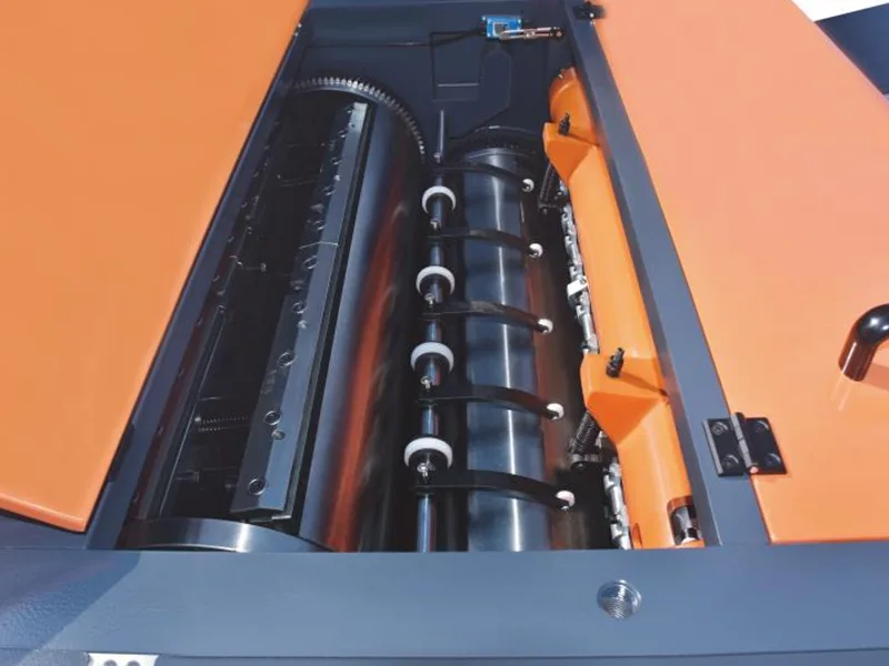 6. Otlačovací válec s velkým průměrem, dynamicky vyvážený pro rovnoměrné nanášení oleje.